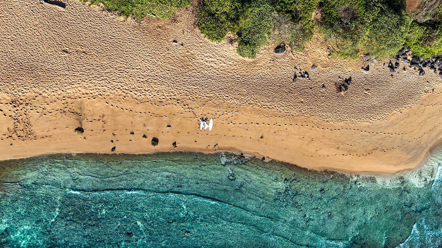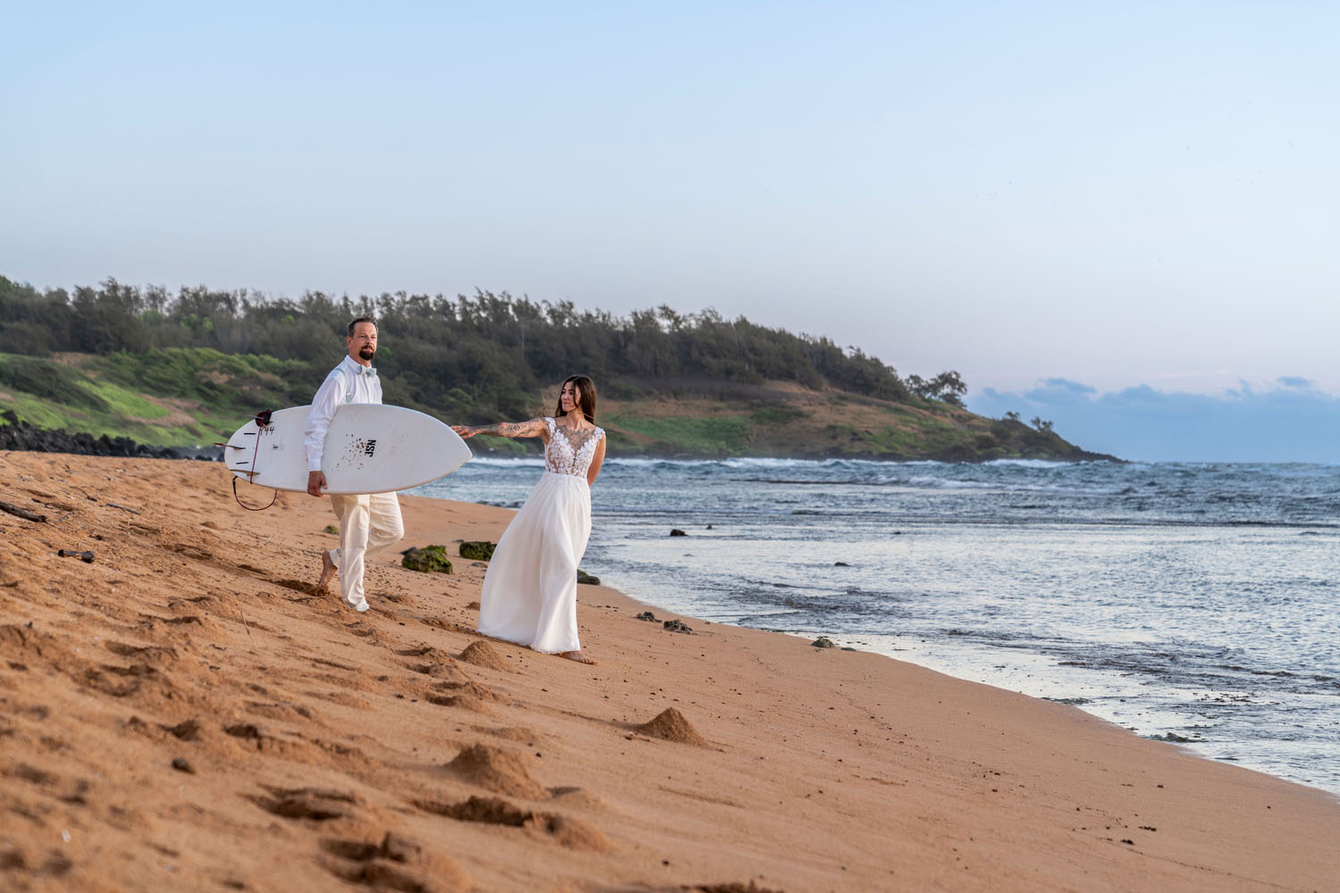 Während die beiden noch in Kalifornien ein paar Tage Westküsten-Vibes aufsaugten, war ich schon auf Kauai unterwegs, habe die Lage gecheckt und passende Spots gesucht. Der Sunrise-Beach fürs Ja-Wort war schon fixiert (inkl. offizieller Anmeldung – danke an die Traurednerin). Aber klar: auch Sonnenuntergangs- und Traumkulisse-Fotos mussten her. Also Google Earth angeworfen, Sonenwinkel berechnet, Locations vorab markiert – und dann vor Ort alles abgefahren.
