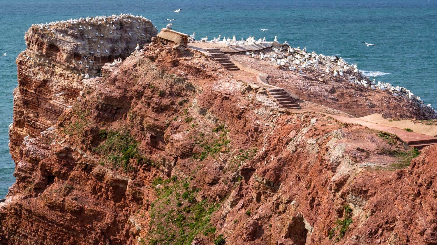 Heute bietet Helgoland Hochsee-Flair pur! Es ist es vor allem ein Sehnsuchtsort für Naturfreunde. Ornithologen zieht es zur berühmten „Langen Anna“ – einer imposanten roten Felsnadel, 47 Meter hoch und 25.000 Tonnen schwer, die stolz aus dem Meer ragt. Helgoland beheimatet die einzige Brutkolonie des Basstölpels in Deutschland. Seit 1991 brüten die eleganten Meeresvögel an den steilen Felsen des Lummenfelsens und an der Westklippe.