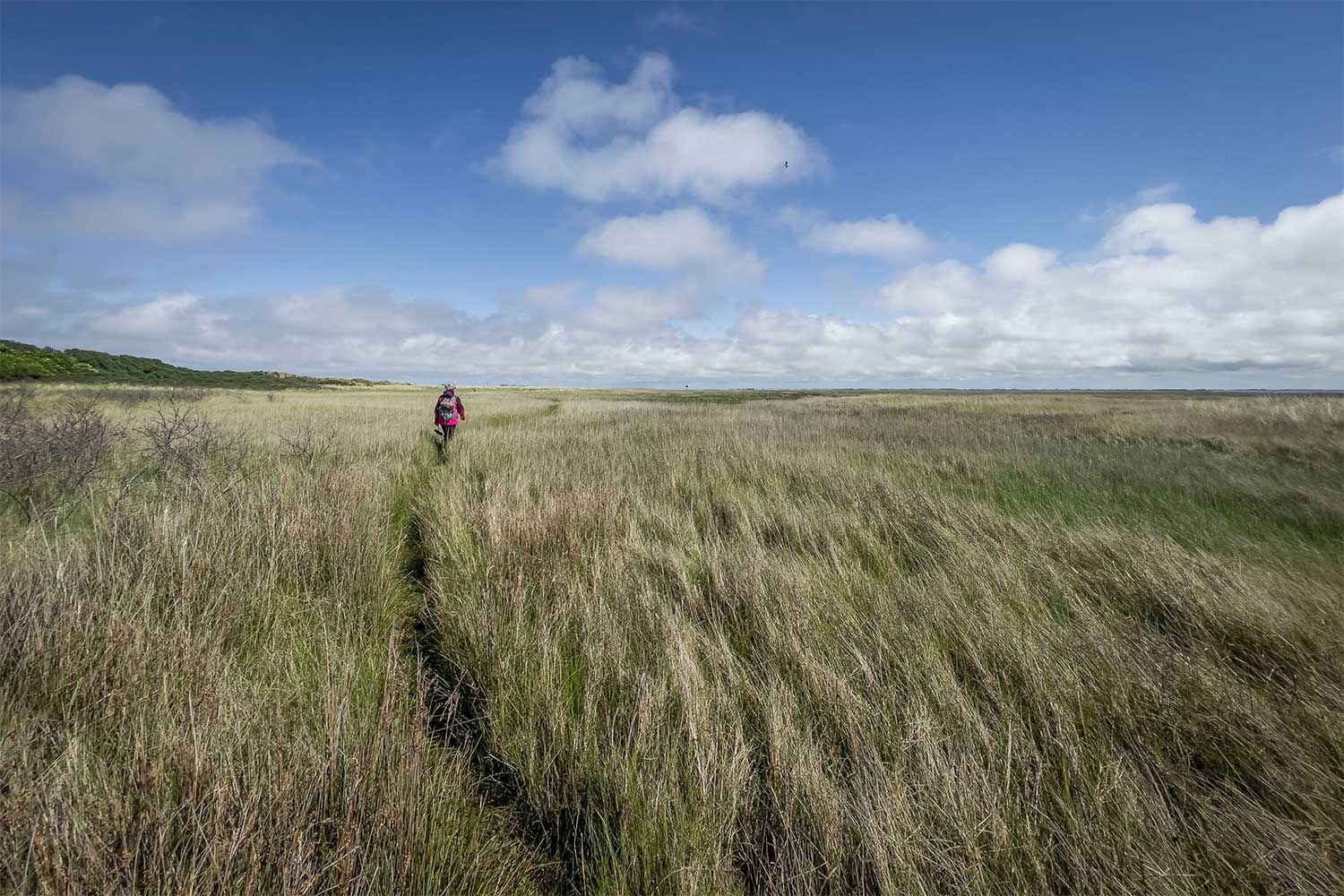 Autos sind nur wenige unterwegs. Wer sich bewegt, tut das, wie alle anderen, mit dem Fahrrad. Die etwas mehr als 3.500 Ameländer sind stolz auf ihre Insel – zurecht! Ein Großteil der Insel ist Naturschutzgebiet mit einer erstaunlichen Vielfalt an Landschaften: Schneeweiße Strände, fein wie Staubzucker, Dünen, steppenartige Grasflächen, Wälder, ein „Grüner Strand“, Deichland und das Watt. Wind kommt auch nicht selten vor…