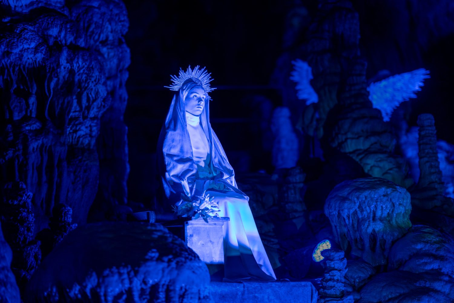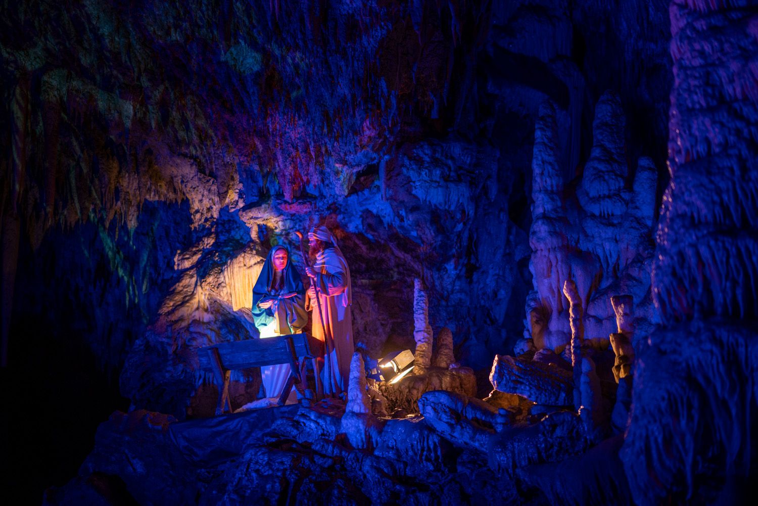 Seit über 30 Jahren findet dieses außergewöhnliche Krippenspiel alljährlich zwischen Weihnachten und Neujahr statt und dauert rund 90 Minuten. Die Reise beginnt mit einer 3,7 Kilometer langen Zugfahrt tief hinein in die bizarre Unterwelt der Tropfsteine, bevor sich der 1,5 Kilometer lange Rundweg mit seinen 18 biblischen Stationen eröffnet.