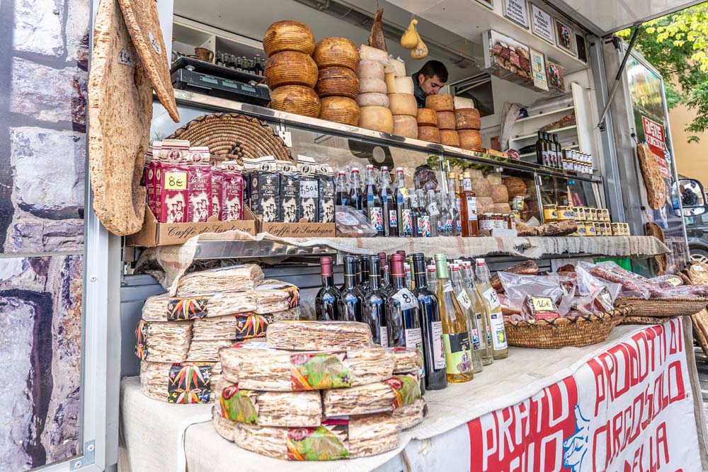 Ein kleiner kulinarischer Auszug: Porcheddu – junges Schwein am Spieß über offenem Feuer gegrillt und mit Myrthe gewürzt; Culurgiones – gefüllte Teigtaschen; Bottarga – getrockneter und gesalzener Rogen, perfekt mit Spaghetti; Fregola con Arselle – kleine geröstete Pastakügelchen z.B. in Suppe mit Venusmuschen; Pecorino Sardo – den Schafskäse gibt es überall, besonders in den Bergdörfern; Pane Carasau – das knusprige hauchdünne Hirtenbrot; Mirto, der traditionelle Likör; Salsiccia Sarda – Sardische Wurst mit Fenchelsamen und natürlich herrlicher Wein (Cannonau) sowie hervorragendes Olivenöl. Na, Appetit bekommen?