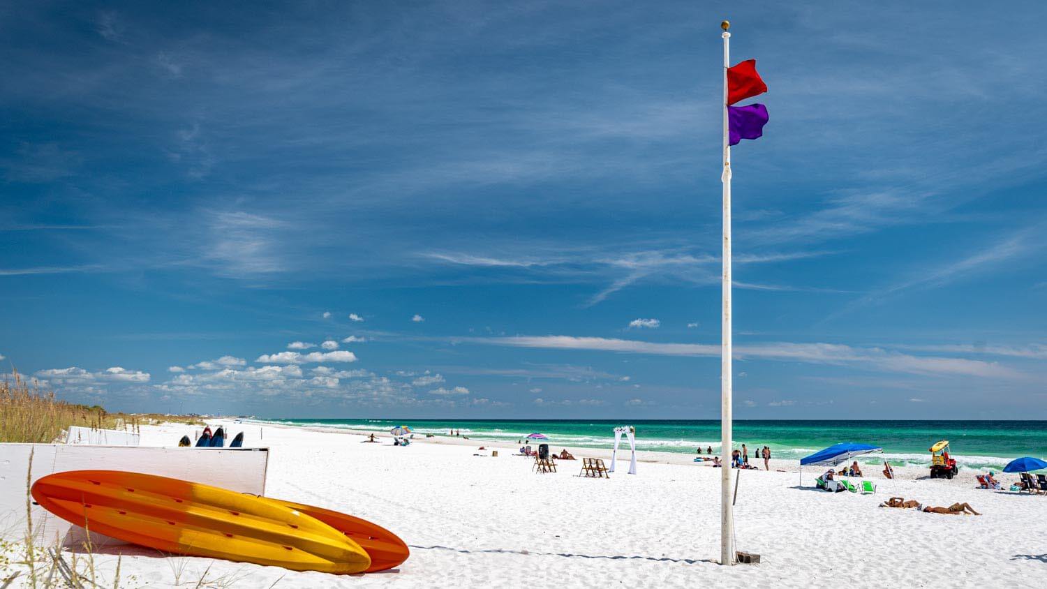 Entlang der Küste des Golf von Mexico wechseln sich endlose Marschlandschaften mit hoch aufragendem Gras und strahlend weiße, pudrige Traumstrände ab – gesäumt von Dünen, die nicht nur malerisch aussehen, sondern auch als natürlicher Schutzwall gegen die regelmäßigen Hurrikans dienen. Deshalb dürfen sie meist auch nicht betreten werden. Auf über 700 Kilometern reiht sich ein Badeparadies ans nächste, jedes mit ganz eigenem Charme – irgendwo zwischen Südstaatenflair und Karibikvibes. Biloxi, Dauphin Island, das quirlige Destin mit Crab Island, Mobile, Pensacola, Panama Beach… die Liste ließe sich fortsetzen. Und wenn entlang der malerischen Küstenstraße plötzlich ein Warnschild vor Bären auftaucht – kein Grund zur Panik, aber auch kein Scherz: Die pelzigen Gesellen kommen tatsächlich aus dem nahen Apalachicola National Forest auf einen Abstecher vorbei.