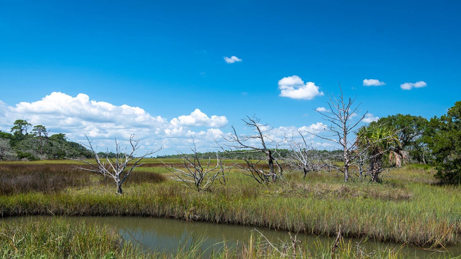 Die Insel selbst ist von atemberaubender, unberührter Schönheit. In den salzigen Marschlanden rund um Jekyll gedeihen die wohl süßesten Garnelen der Südstaaten – ein Genuss, dem die außergewöhnlich zuckerreichen Algen zu verdanken sind, die hier wachsen. Golfspieler hingegen sollten sich gut überlegen, ob sie einen verirrten Ball im Marschland wirklich zurückholen möchten – denn in den trüben Gewässern lauern Einheimische mit beeindruckendem Biss. Wer seine Gliedmaßen und sein Handicap schätzt, lässt den Ball besser liegen.