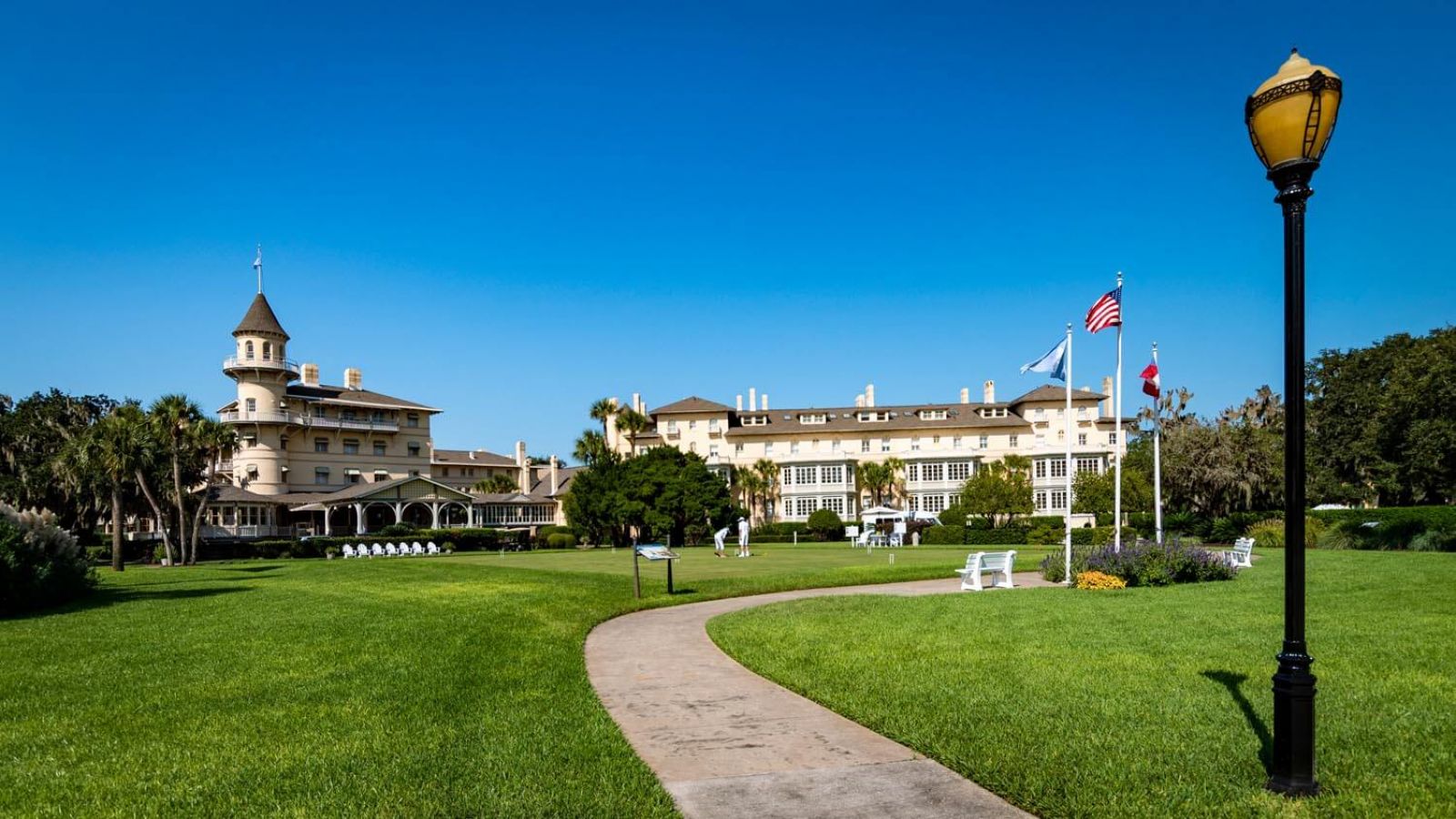 Jekyll Island in Georgia ist Teil der idyllischen Golden Isles und steht heute vollständig unter Naturschutz – bewohnt ist sie dennoch. Einst war die Insel ein exklusiver Rückzugsort für Amerikas High Society: Namen wie J.P. Morgan, Goodyear, Rockefeller oder Pulitzer lassen erahnen, welche gesellschaftliche Liga sich hier zum Wintervergnügen traf. Ihre prachtvollen Anwesen tarnte man bescheiden als „Chalets“ – ein Versuch von Understatement, der angesichts der Villengröße nur bedingt gelang.