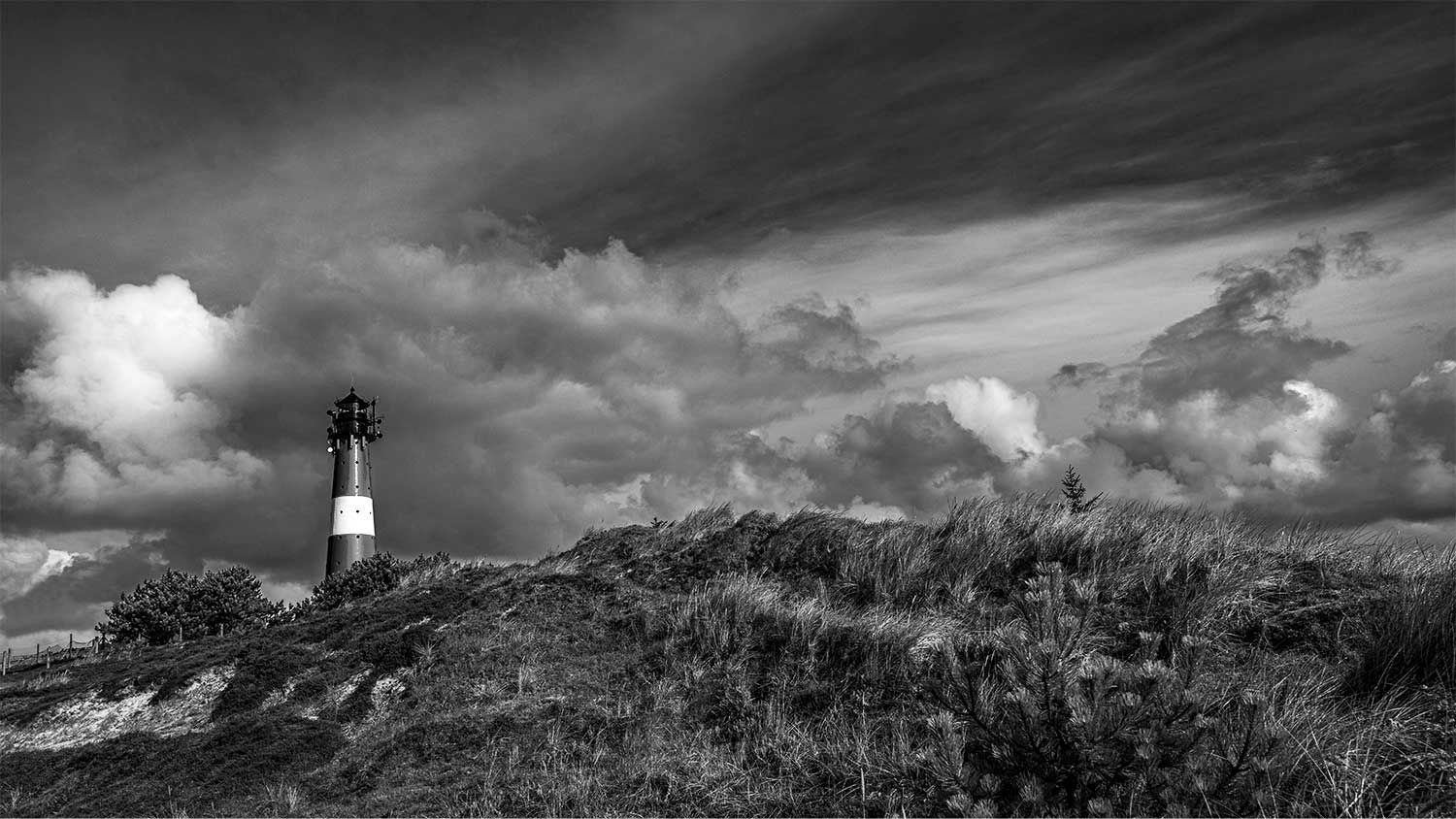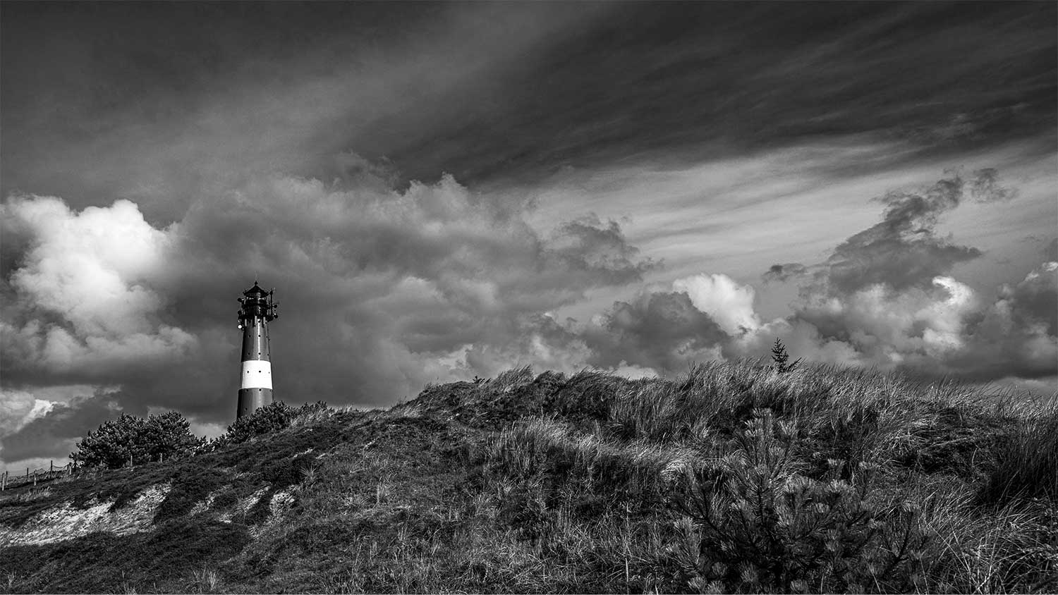 Weil der Leuchtturm in Schwarz-Weiß mehr „Melancholie“ schreit als „Postkarte“.