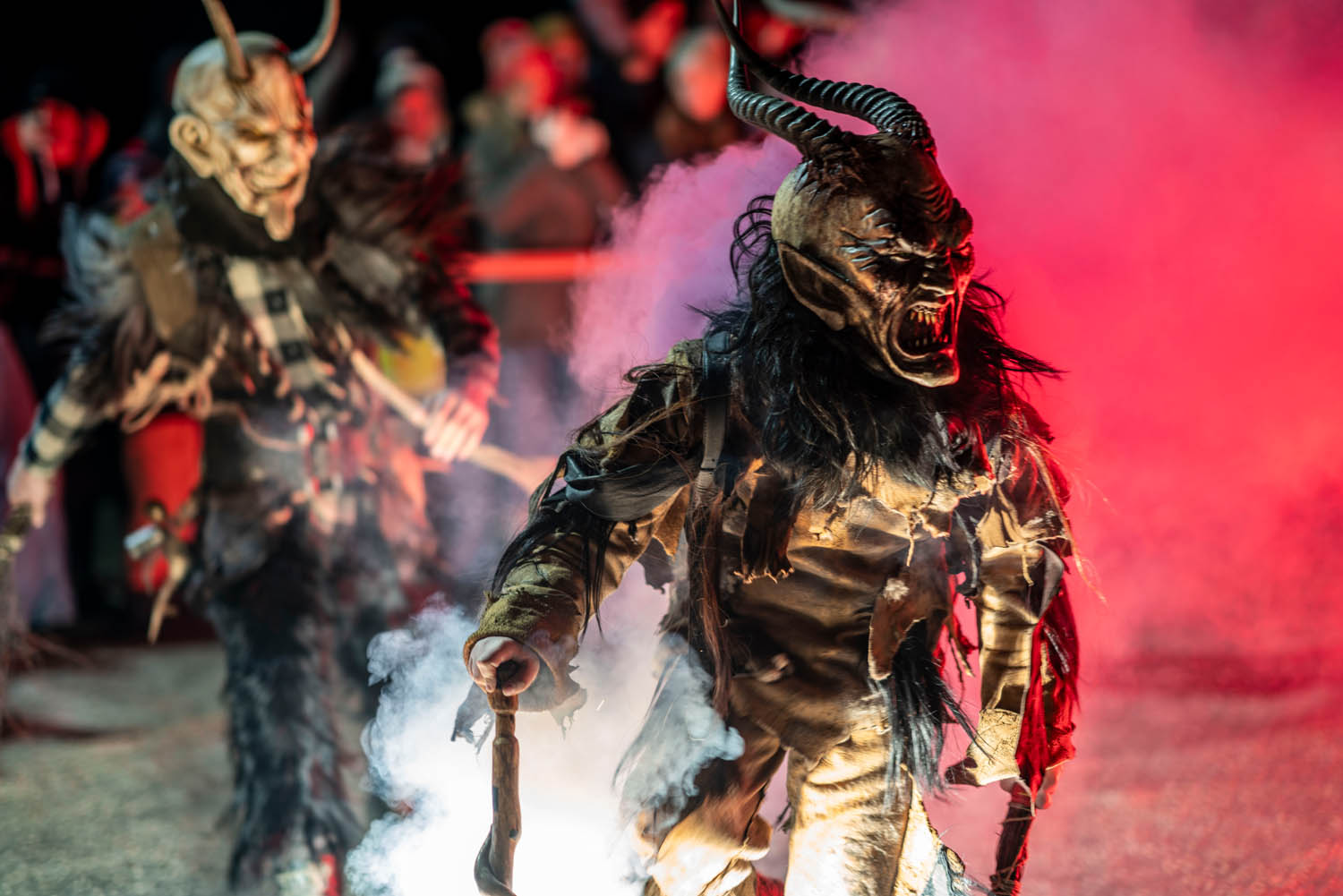 In der Regel gehen diese Spektakel friedlich über die Bühne – es sei denn, das Teufelslulu – wie Zirbener oder Obstler – haben auch das eine oder andere Hirn vor und hinter der Maske vernebelt. Dann kann es passieren, dass wild an Hörnern gerissen oder die unkontrollierte Peitschen- und Rutenführung schmerzhafte Andenken hinterlässt.