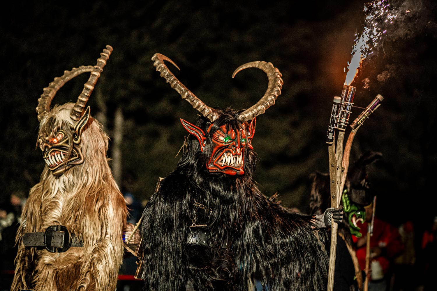 Während die einen jubeln, suchen andere schleunigst das Weite: Kaum naht der Winter, stürmen sie auch schon wieder los – die Perchten. Inzwischen sind es weniger die bunten, tanzenden Wintergeister, es wird mehr zur Pyro-Party im Zottelg‘wand. Kunstvoll geschnitzte Masken wechseln mit Platikkitsch samt Charme "Made in China". Wo früher mystische Gestalten durch verschneite Dörfer schlichen, wirbeln heute Brauchtumsgruppen bereits im Advent (und manchmal noch früher) mit Feuerwerk, Rauchbomben, Motorsägengekreische und Spirituswolken durch die Nacht. Der Winter soll vertrieben werden – offenbar durch exzessive Effekte wie LED-Masken, bengalische Feuer und CO2-Shooter. Wozu überhaupt den Winter vertreiben, wenn er eh kaum noch stattfindet? – Aber das ist eine andere Frage...
